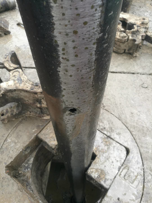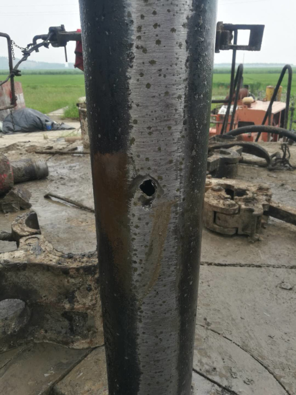 漏點(diǎn)是套管本體上有一個(gè)洞,附近有很多腐蝕坑。感覺套管受過外傷,也好像舊套管。詳見下面的圖片。